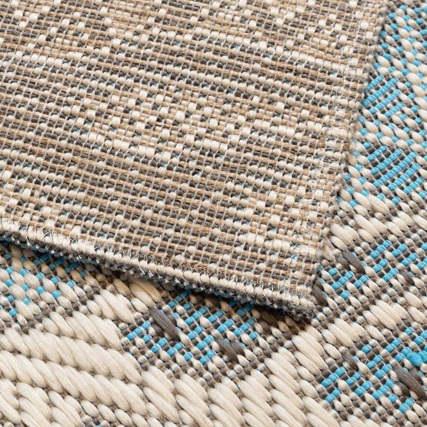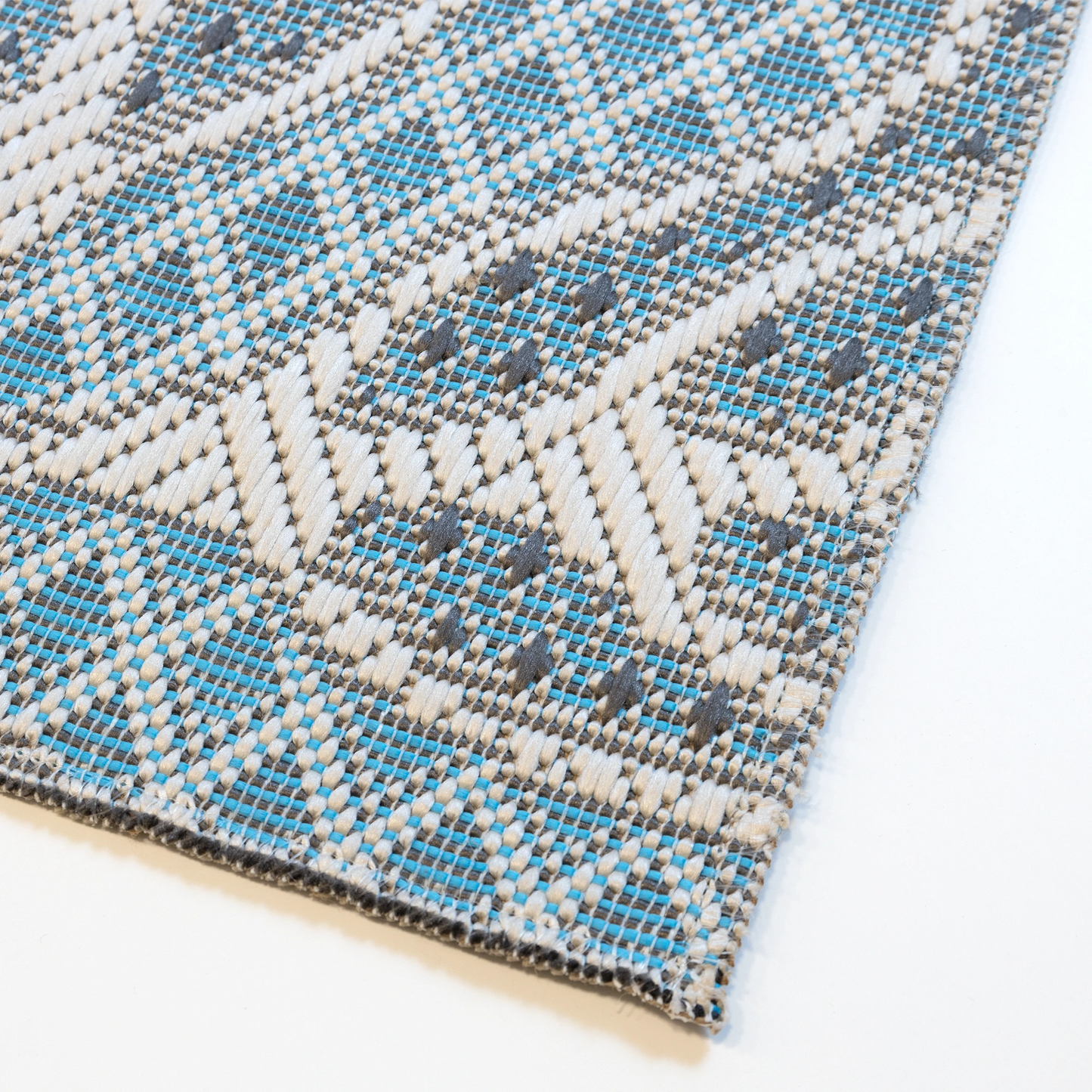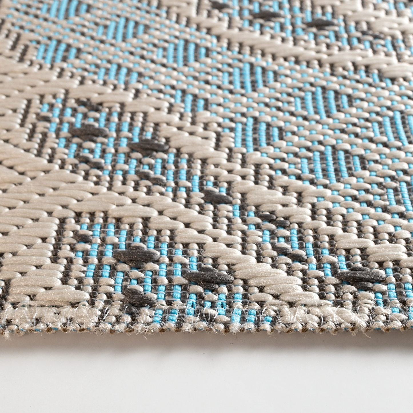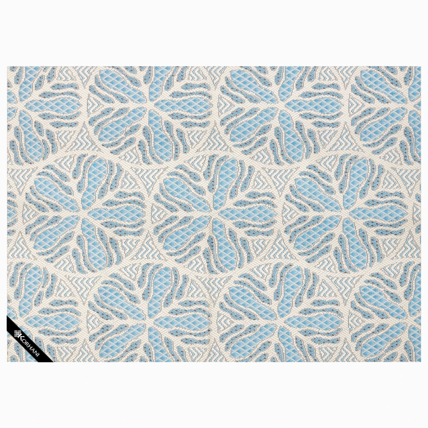 Developed with a modern pattern of off white and blue fibers on a medallion print, making this rug a stylish addition to any home.