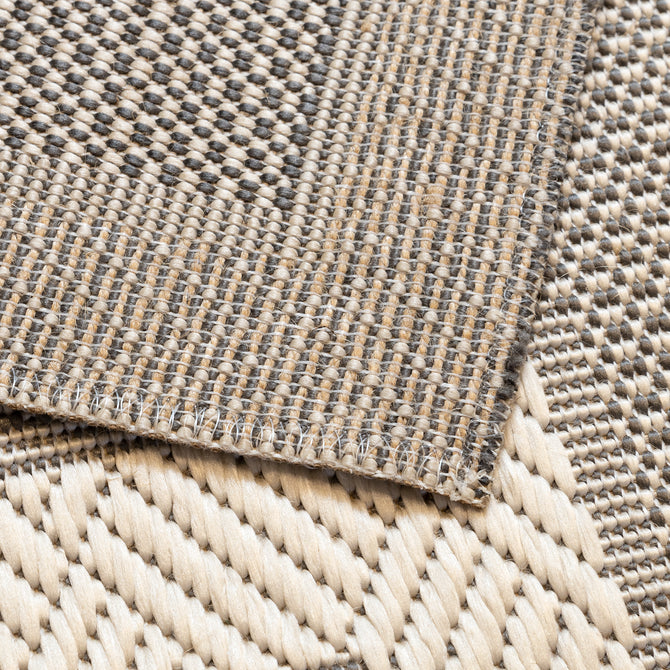 Developed with a modern pattern of tan and grey fibers on a geometric print, making this rug a stylish addition to any home.